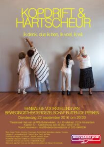 “Spannend, om juist met deze groep vol in te zetten op bewegingstheater. Mooi ook, de vorm wordt meteen thematiek. Een veelzijdige avond: zo vertelt de moeilijk pratende Friese Gerrit de Vries over zijn geboorteprovincie, waar al het groen van vroeger nu langzaam kantoor dreigt te worden. […] Kopdrift & hartscheur is een toe te juichen wijkproject, dat uitdaagt en verbindt.”
