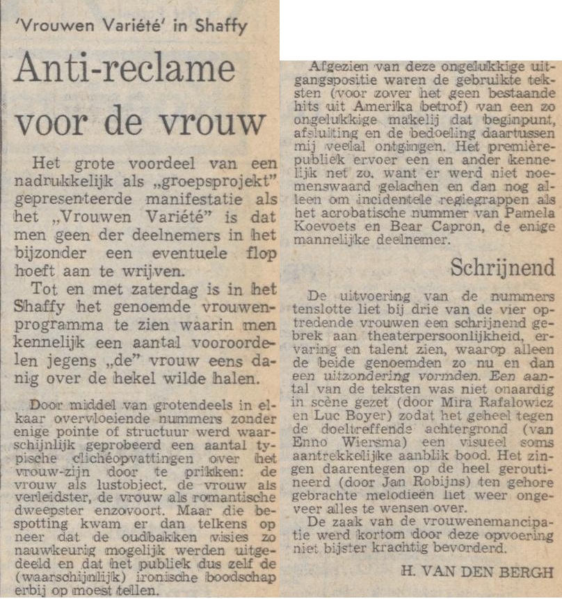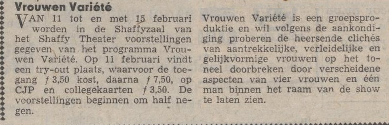 13-02-1975 Vrouwenvariété erg vervelend / Volkskrant